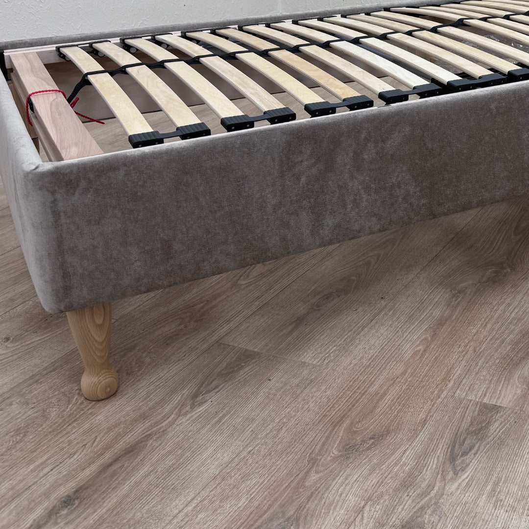 Crafted to perfection this 8” Shallow Base has a fabric lined solid wood base, 28 Sprung Birch Slats, Chrome Support Bar and is available in a Choice of 2” Glides, or 4”, 6” or 8” Legs.